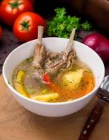 A slow-cooked lamb soup with turmeric, onion, garlic, ginger, potatoes and carrot and lamb bone served with injera or bread.