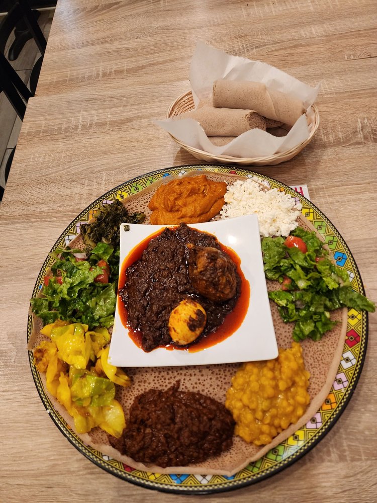So good! Fresh and delicious veggie platter with great injera. The shiro was soo good, I'll definitely get extra next time! The baklava was the freshest and best I've ever had, not too sugary and fresh nuts.